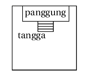 - Jika pada ruang pertemuan tersebut akan ditempatkan sebuah panggung berukuran 10 m x 5m yang menempel di tengah suatu dinding (lihat gambar), lebar minimum ruang pertemuan adalah … m
