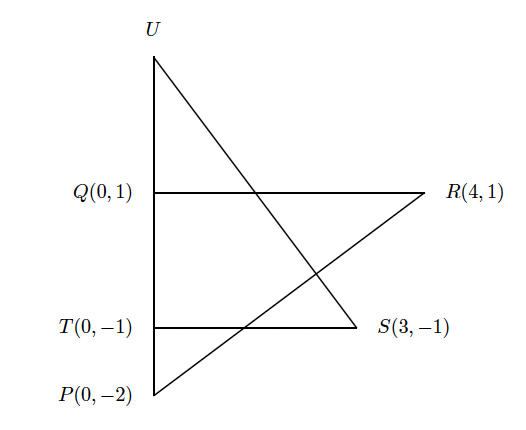 Jika (a,b) adalah koordinat titik U, nilai a+b adalah ….