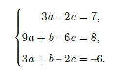 - Sistem persamaan linear dalam a, b dan c yaitu