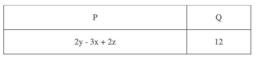 Dari gambar di atas, manakah pernyataan benar tentang x, y, z ?